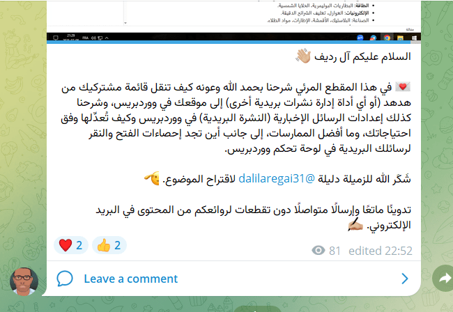 ثم تذكرتُ صديقنا ووردبريس، فهو أيضًا يُتيح لمستخدميه إطلاق نشراتهم البريدية بجوار مدوناتهم وهذا شيء رائع للأمانة، فقد أحببتُ ذلك جدًا. ودون تفكير في كيفية نقل نشرتي إلى ووردبريس هرعتُ لطلب ذلك من الأستاذ يونس وذلك لسببين:
